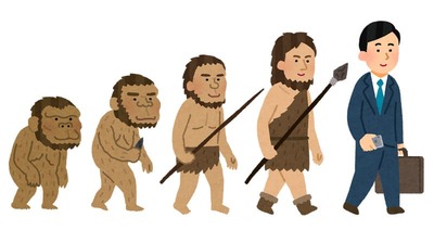 猿人、原人、旧人、新人、現代人と、人類が進化していく過程を表したイラストです。